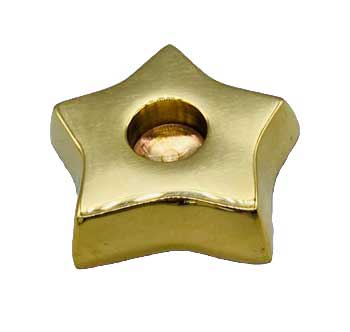 Brass Star holder for 1/2" chime candles. A heavy weight for added stability of all your favorite chime candles. Solid Brass and measuring 2" wide, standing height of 1/4" and a 1/2" wide hole in center.