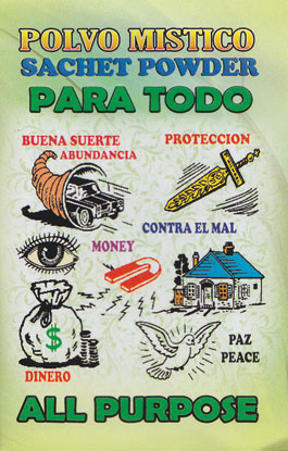 All-purpose sachet powder is a versatile magical product. Traditionally used to dress important paperwork or petitions, sprinkling on ground where the target will walk over, as a magical carpet sprinkler, container spells, mojo bags, or simply sprinkle on your altar. Safe to use on skin as a magical scented body powder, add to baths, and can be used to dress candle after oil is added. All purpose is traditionally used for any magical need including, abundance, protection, money, peace, or for the home or environment and more. 1/2oz.