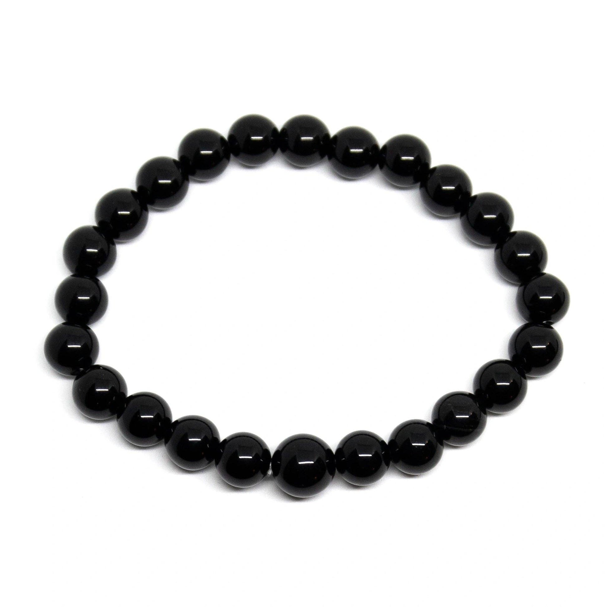 Black Tourmaline Round Stretchy Beaded Bracelet - Wrist Mala - Prayer Beads - 8mm. Qualities or Properties of Black Tourmaline: A protective stone that repels and blocks negative energies. Aids in the removal of negative energies within a person or a space. Cleanses, purifies and transforms dense energy into a lighter vibration. Great for grounding and balances, harmonize, and protect all Chakras. Protects against electromagnetic radiation. Protects against noise and other such disturbances. Aids to remove fear and boost self-confidence. Bead Size: 8mm with 10mm Guru Bead. Bracelet Length: About 7 inches in the inside circumference for Average Wrists.