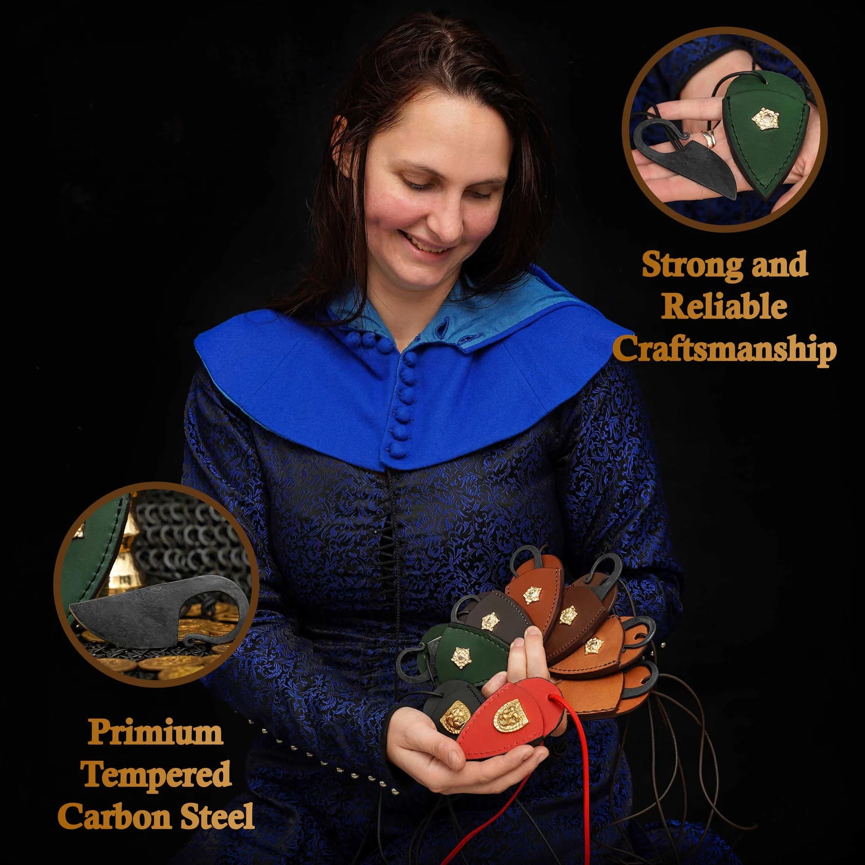 Mythrojan Celtic Ring Knife Hand Forged Necklace Knife with Leather Sheath