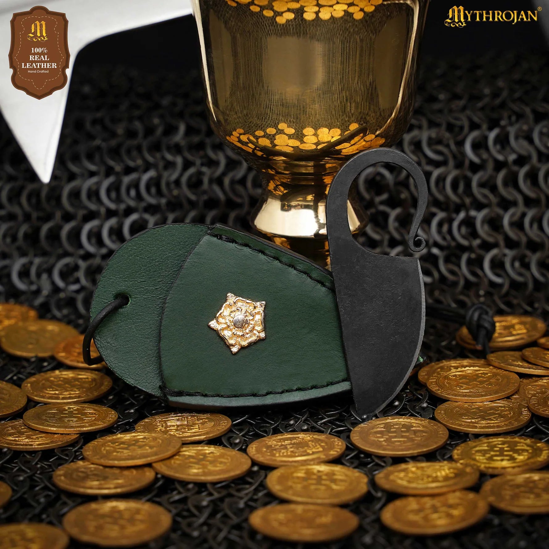 ⭐ FULLY FUNCTIONAL: This blade is fully intended to be used, and won't disappoint you. The blade edge comes dull for re-enactor use, but can be sharpened. Knife Size: 8.5 cm, Leather Sheath Size: 10 X 5.4 cm . This knife is Packed with oil to Prevent rust in shipping, we recommend keeping all Carbon Steel blades dry or oiled.