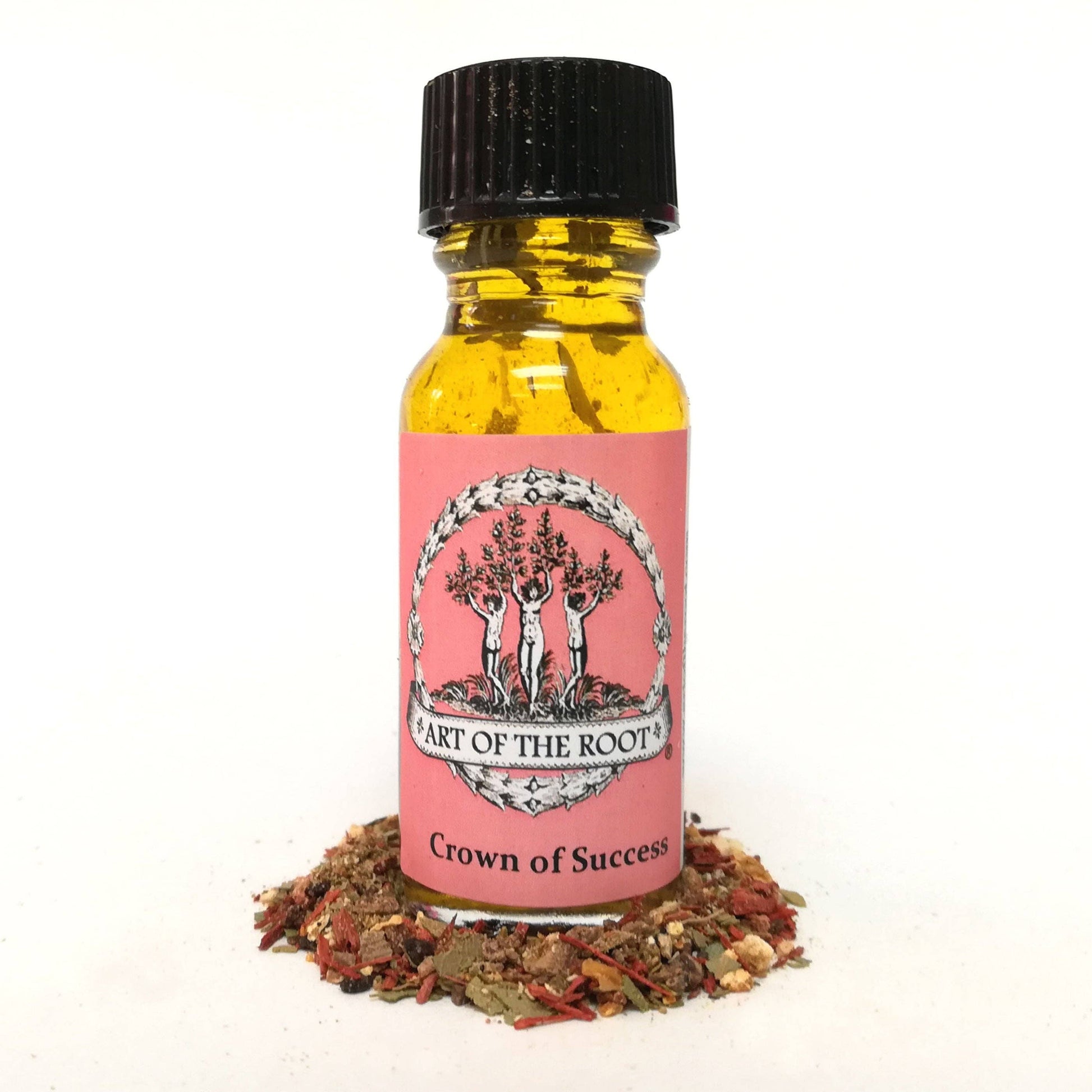 Crown of Success Oil is a powerful blend that helps bring success in life. It works to help you accomplish goals and eliminate barriers. It is ideal for apartment hunting, job searches, interviews, promotions, legal matters, relationships, and even attaining a long-coveted goal. Use it to bolster business success and create a competitive occupational edge. It comes in a ½ oz. glass bottle. What does Crown of Success Oil Do: * Bring overall success in life. * Help you accomplish goals and achieve objectives. * Remove blocks and barriers to success. * Lends a competitive advantage. What are the ingredients in Crown of Success Oil: Our Crown of Success Oil includes bay, orange, High John root, vetiver, and a number of other success-related herbs, oils, and resins.