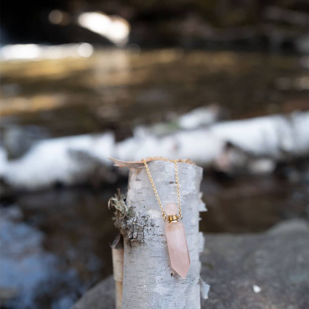 Gemstone Point Pendant Perfume Bottle Necklace - Rose Quartz