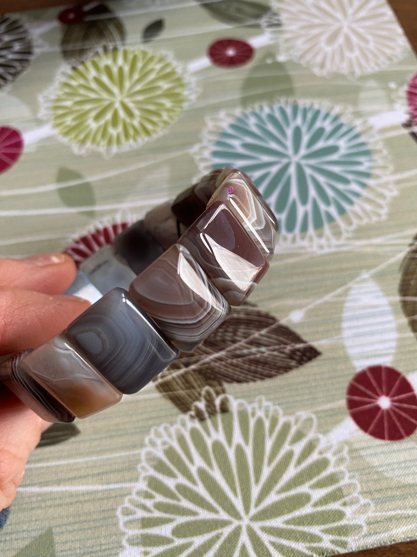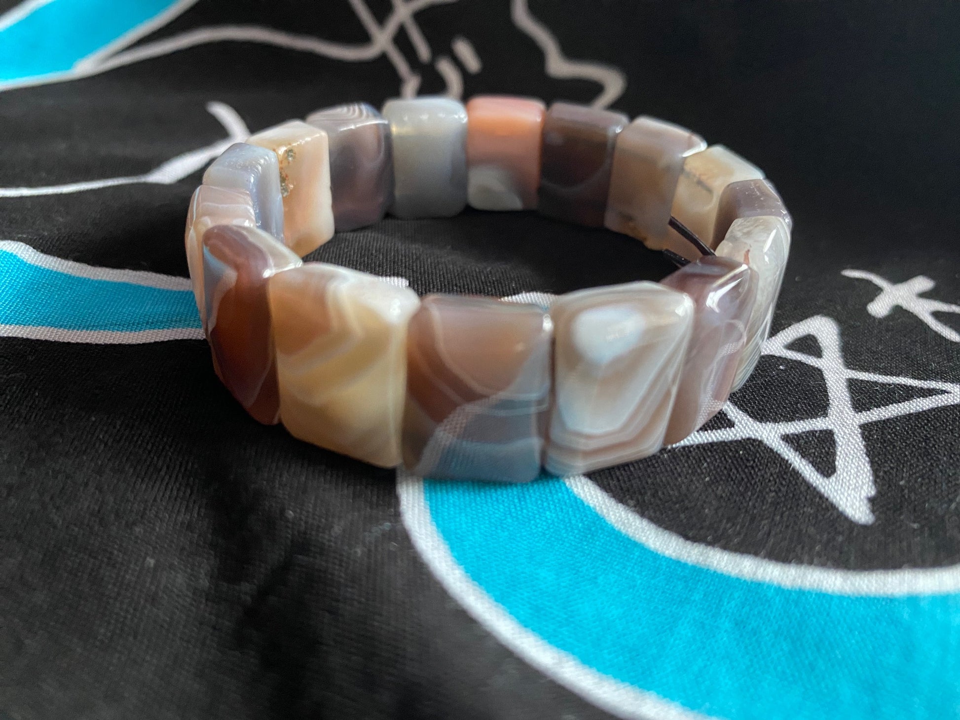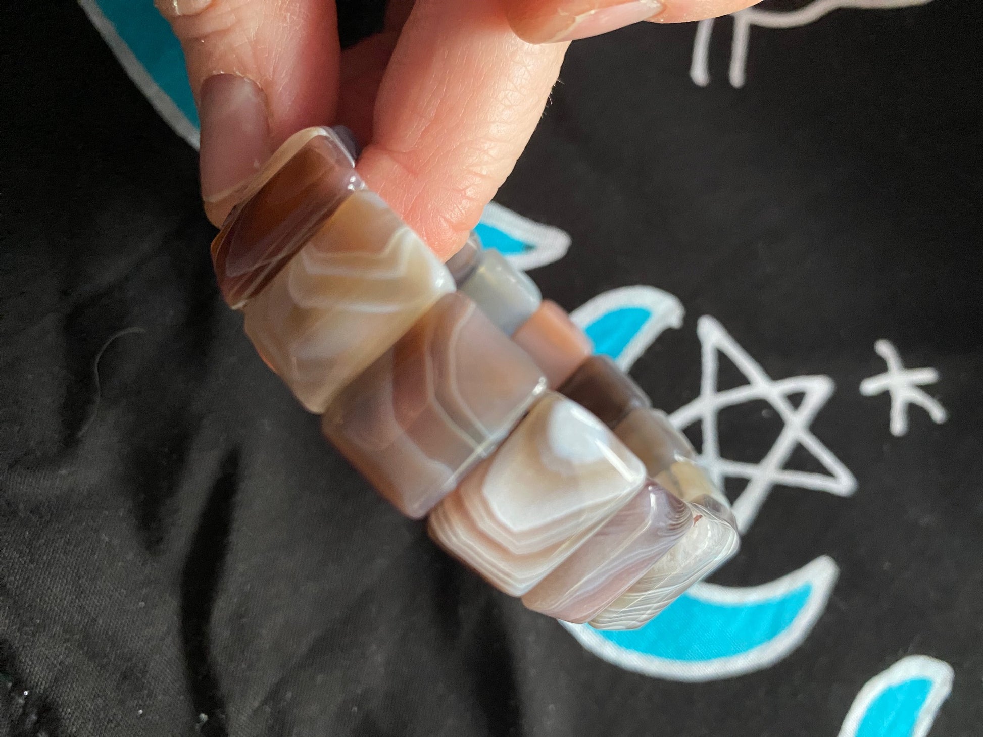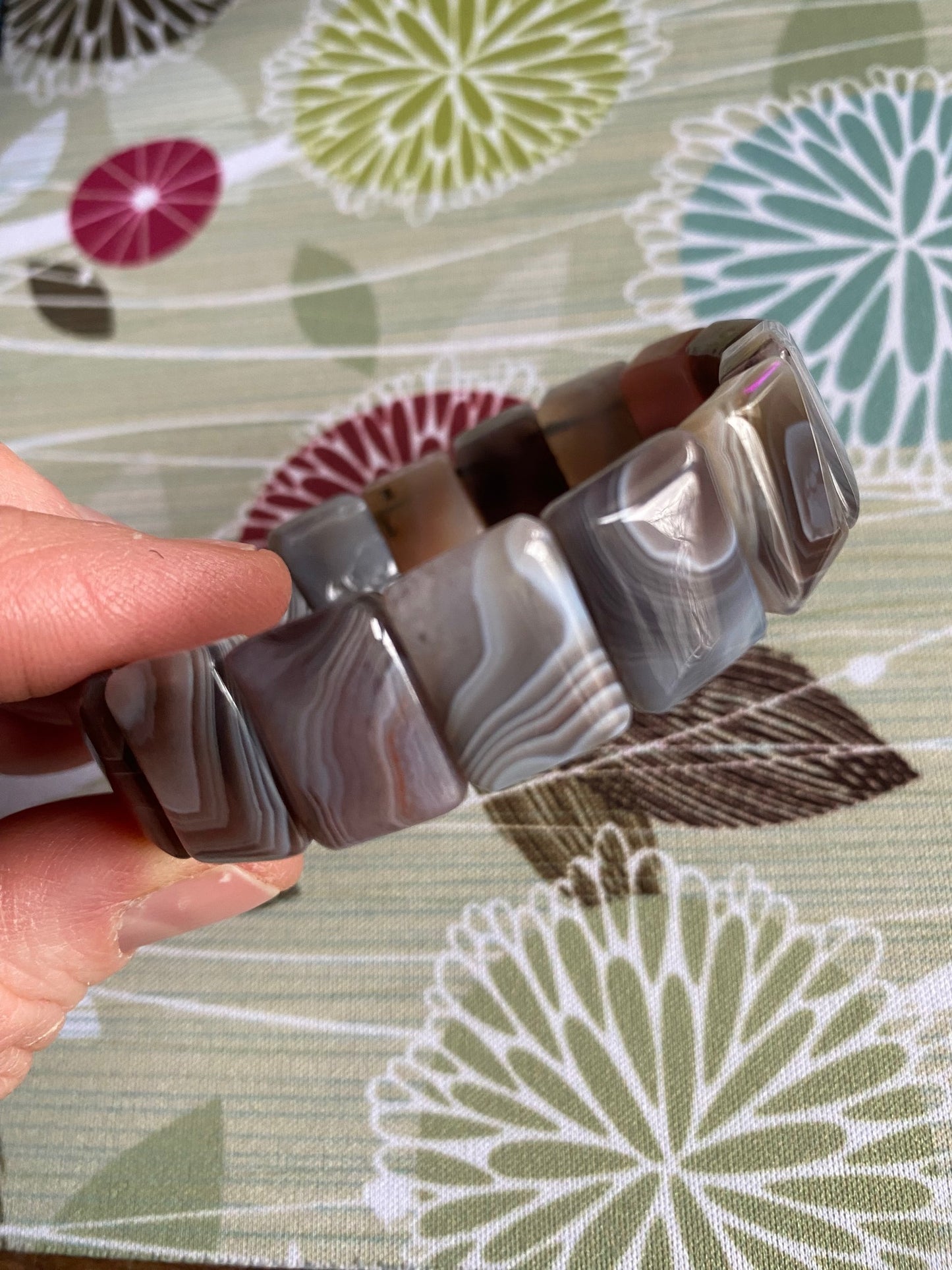 A beautiful striped agate bracelet with larger stones. Stone size is approximately 0.63*0.47n(1.6*1.2cm). Buyer will receive one hand selected larger high quality banded agate bracelet.