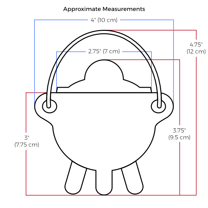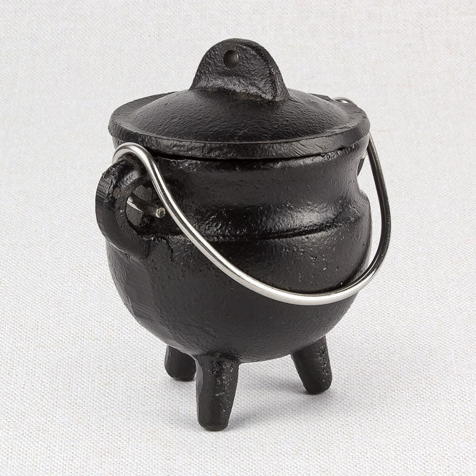 This sturdy 2.5” diameter stylized iron cauldron is for burning incense.