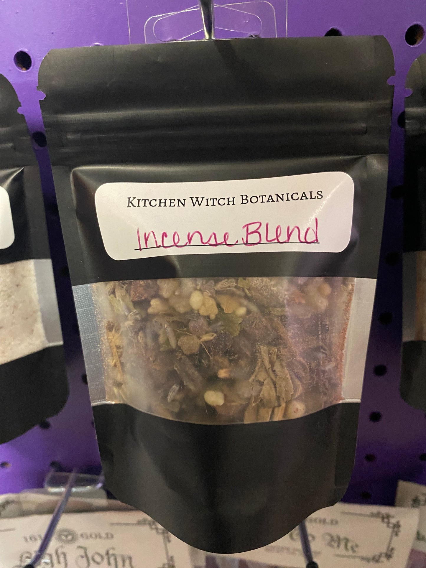 Kitchen Witch Botanicals incense blend handcrafted with botanical ingredients. Burn this beautiful blend with a charcoal disk to fill your space with a cleansing and purifying aroma.