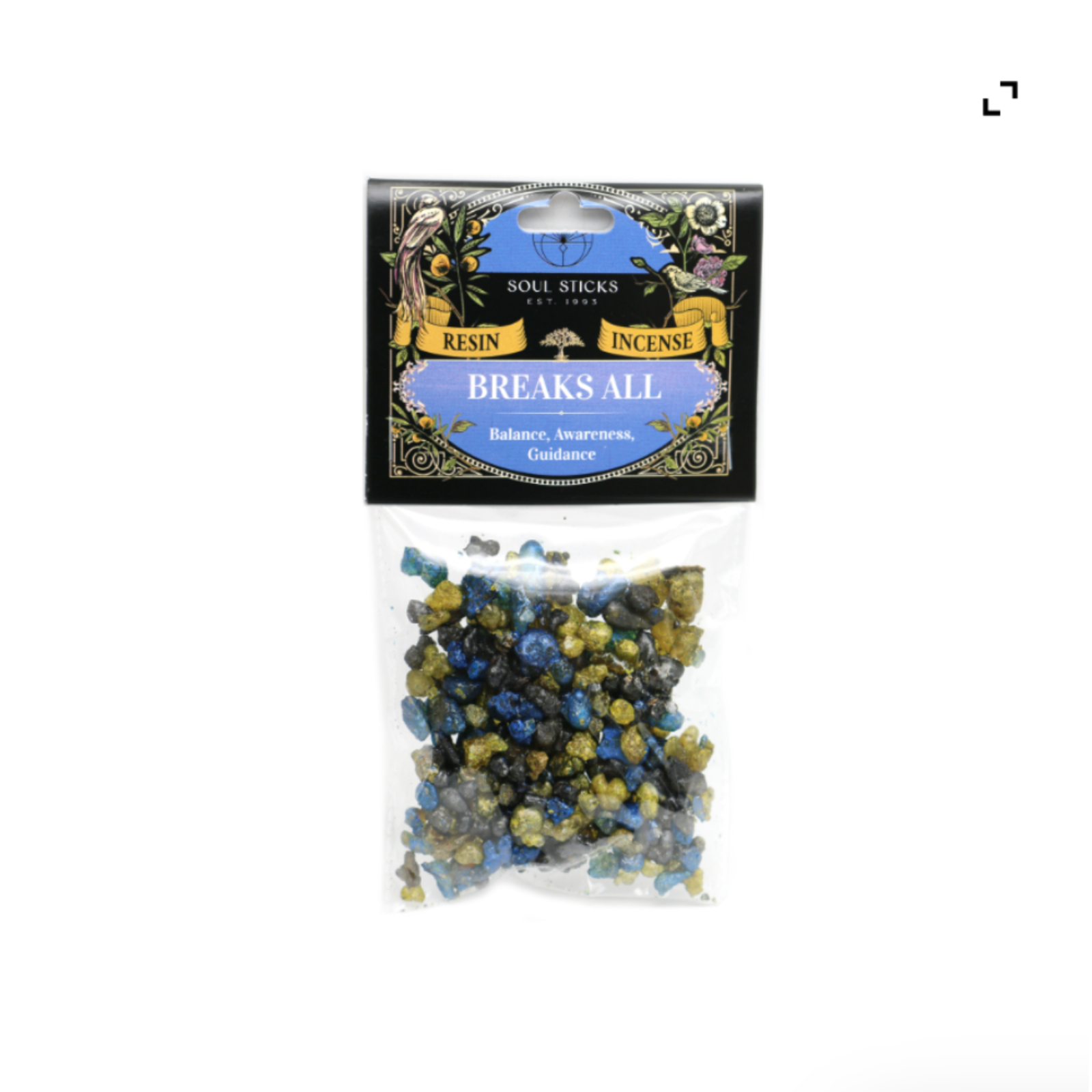 Breaks All Resin Incense is a potent spiritual formula crafted with strong uncrossing and banishing ingredients, ideal for situations where deep cleansing and energetic release are needed. Burn it over charcoal during spiritual work to break hexes, end toxic cycles, and dissolve limiting forces that interfere with your progress. Perfect for use in reversal spells, personal healing, and home protection.