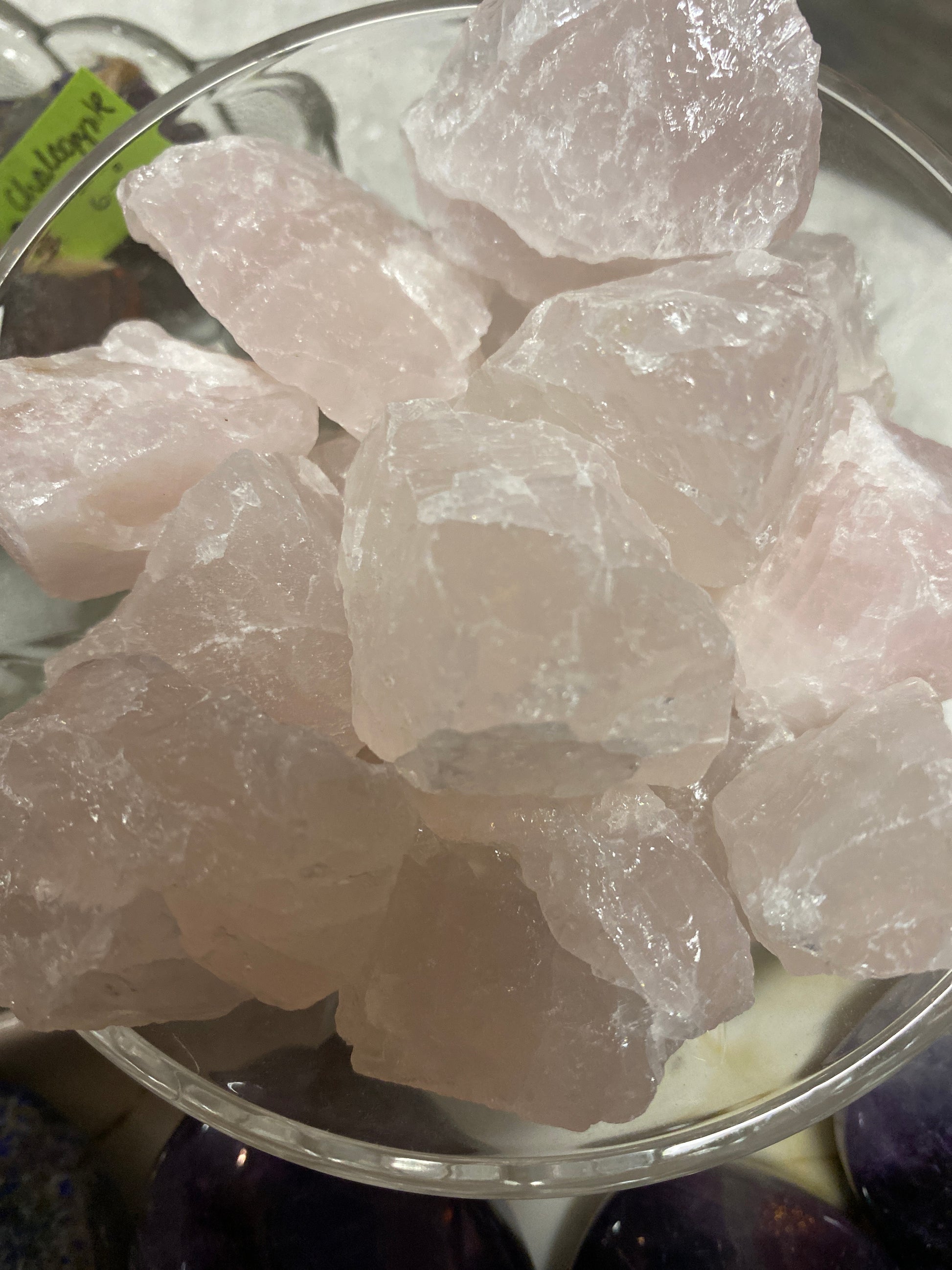 Rose quartz promotes love and opens the heart chakra. It promotes peace, happiness, and fidelity. It opens the heart chakra and is believed to reduce stress and tension in the heart both physically and emotionally. Receptive energy. Ruled by Venus. Element water.