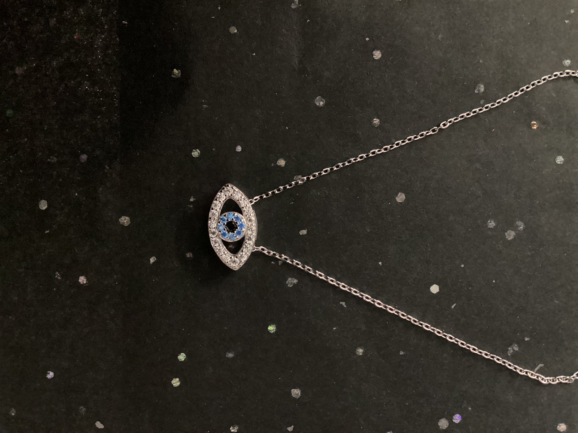 Sterling silver large evil eye necklace with rhinestones. Chain included.