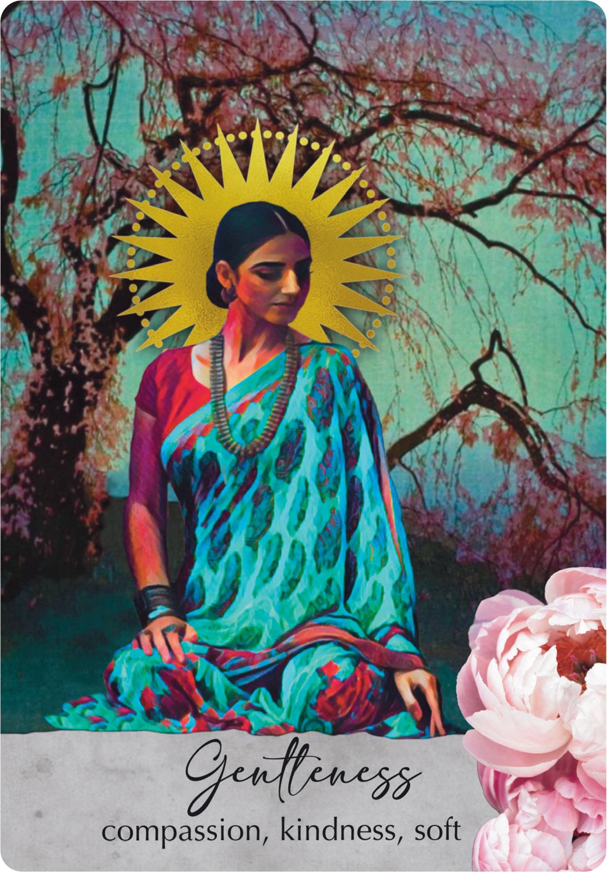 The Oracle of Awakening is infused with high-frequency energy and intention to help trigger a remembrance of your expanded self and your infinite potential. Each card is a portal, layered with vibrant colors, textures, people, plants and animals, symbols, and keywords. The accompanying guidebook is filled with inspiration for working with the energy of each card. Use these cards in your own way—as a daily draw, as inspiration for meditation, or in your personal rituals and ceremonies. You can also combine oracle cards with your tarot readings to expand and clarify your offerings and understanding. Additional spread ideas are included in the guidebook. This deluxe package contains 44 gilt-edged, full-color cards and a 112-page guidebook. The deck has a diverse representation of people, animals, plant life, and spiritual symbolism. Each card also features a selection of keywords to inspire your interpretation.