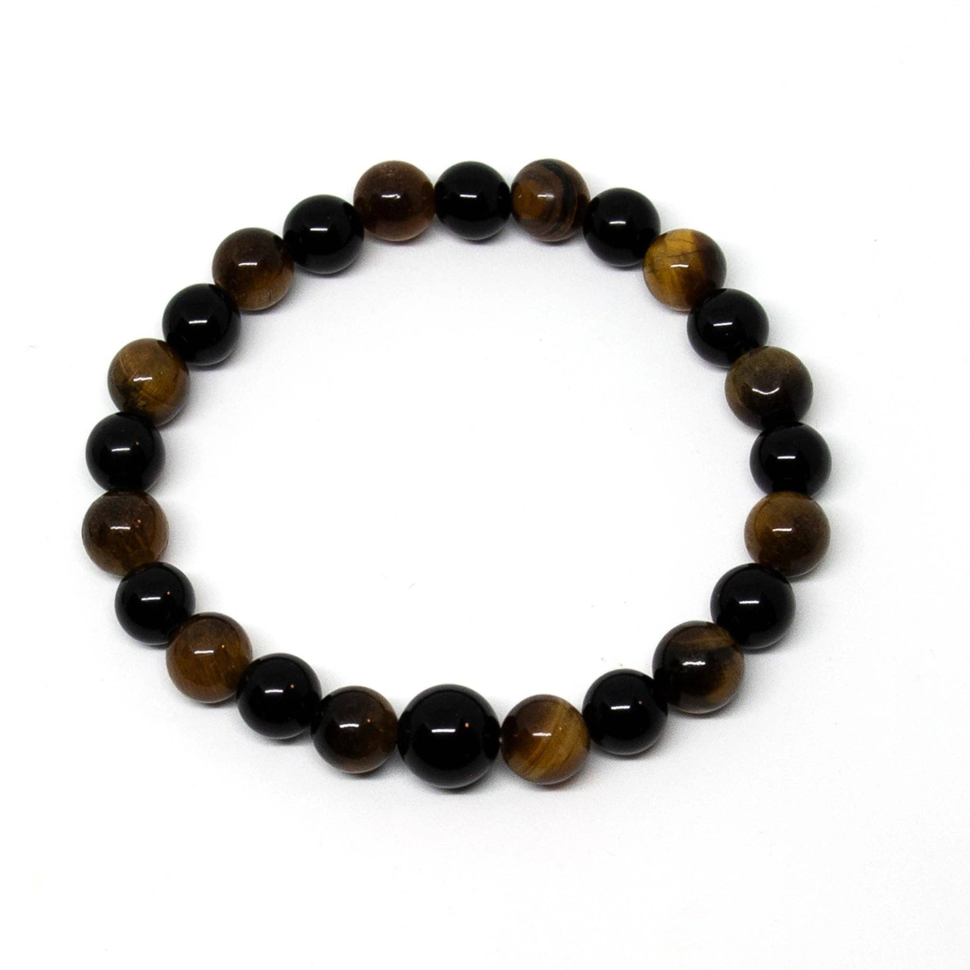Tiger's Eye & Black Obsidian Beaded Bracelet Wrist Mala 8mm
