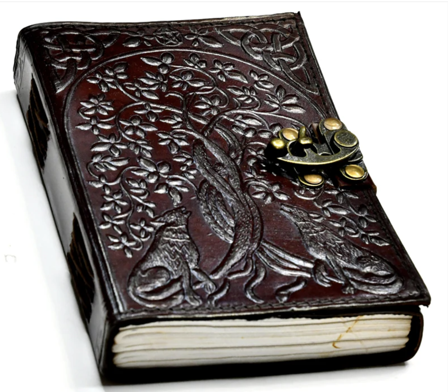 Wolf & Tree of Life leather blank book w/ latch