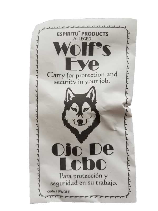 The "wolf's eye" is a powerful addition to magic intended to protect against curses, spells, and negative attention.